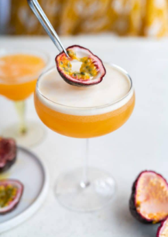 A tropical passionfruit martini with a cheeky twist